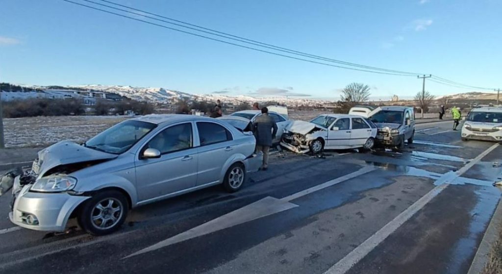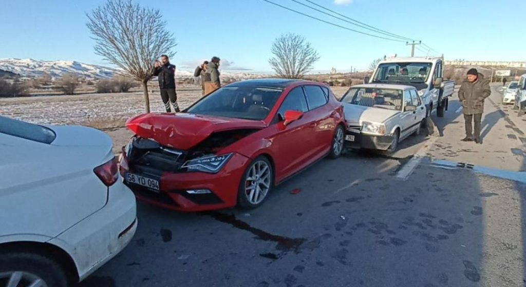 Sivas'ta iki aracın karıştığı kazaya arkadan gelen 8 araçta dahil oldu. Zincirleme trafik kazasında bir kişi yaralandı.