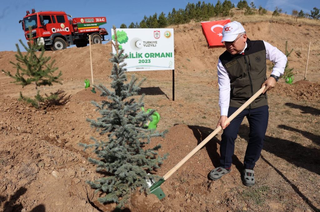 Valilik Yüzüncü Yıl ormanında fidanları toprakla buluşturan Vali Şimşek,