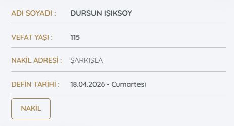 Edinilen bilgilere göre, Dursun Işıksoy’un cenazesi Sivas merkezden alınarak Şarkışla ilçesine nakledilecek. Cenazenin 18 Nisan 2026 Cumartesi günü toprağa verileceği öğrenildi. Ailesi ve yakınları, Işıksoy’u son yolculuğuna uğurlamak için hazırlıklarını sürdürürken, bölgede de hüzünlü bir bekleyiş yaşanıyor.