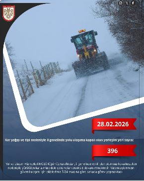 Yoğun kar yağışı ve tipi nedeniyle Sivas genelinde ulaşıma kapalı yerleşim yeri sayısının 396’ya ulaştığı bildirildi. Özellikle yüksek rakımlı köylerde kar kalınlığının artmasıyla birlikte yolların kapanması, günlük yaşamı zorlaştırdı.