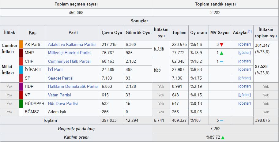 2018 yılında yapılan seçimlerde milletvekili çıkaramayan ancak en yüksek sayıda oy alan parti ise 27.987 oy olan İYİ Parti oldu.