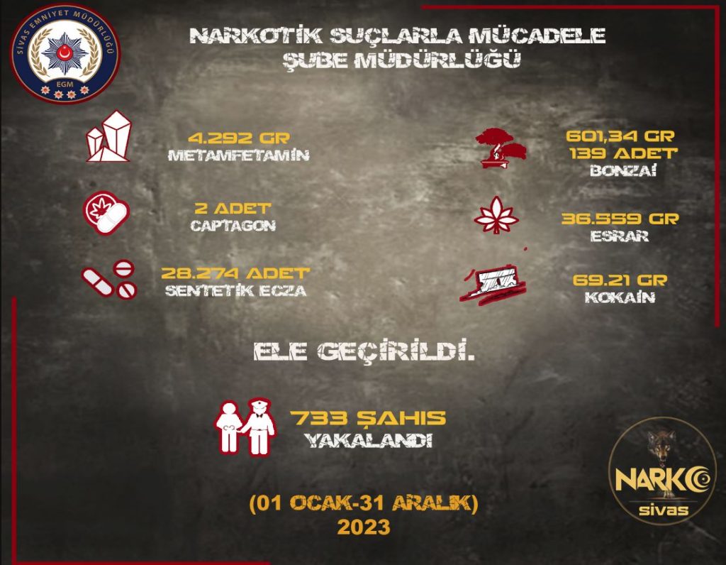 Sivas Emniyet Müdürlüğünün resmi sosyal medya hesabından yapılan açıklamada: " 733 şahıs yakalandı." ifadelerine yer verildi.