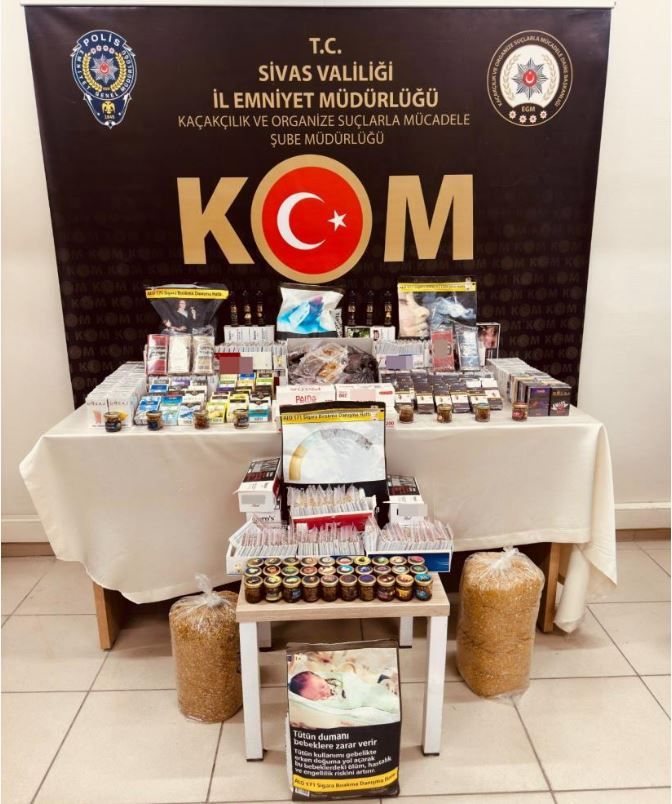 Kaçakçılık ve Organize Suçlarla Mücadele Şube Müdürlüğü ekiplerince, kaçakçılık olaylarını engellemek amacıyla düzenlenen operasyonlar hız kesmeden devam ediyor. Geçtiğimiz günlerde ve yılbaşı öncesinde Sivas Cumhuriyet Başsavcılığı koordinesinde yürütülen çalışmalarda 5 işyeri ve 1 araçta yapılan arama işlemlerinde çok sayıda kaçak alkol ve tütün ürünü ele geçirildi. Yapılan çalışmalarda; 80 Şişe Kaçak/Sahte Alkol,10,250 Kilogram Kaçak Nargile Tütünü, 3.400 Adet Bandrolsüz Boş Makaron, 5.280 Adet Doldurulmuş Makaron/Sigara, 6 Adet Elektronik Sigara Likiti, 5 Paket Kaçak Pipo Tütünü, 45 Paket Bandrolsüz Kaçak Sigara, 12 Kilogram Bandrolsüz Açık Tütün ele geçirildi. Olaya ilişkin, 7 şahsa Kaçakçılıkla Mücadele Kanununa Muhalefet suçundan yasal işlem yapıldı. (İHA)