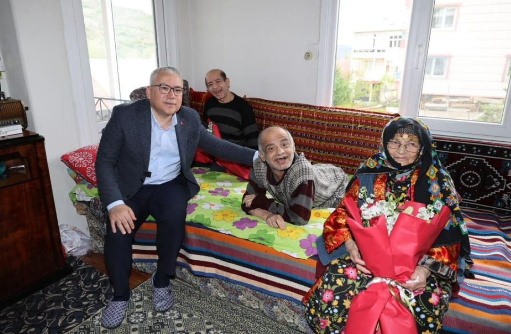 Sivas Valisi Yılmaz Şimşek, 60 ve 53 yaşındaki iki engelli oğluna bakan 93 yaşındaki Gülsüm Karamuk’u ziyaret ederek Anneler Günü’nü kutladı.
