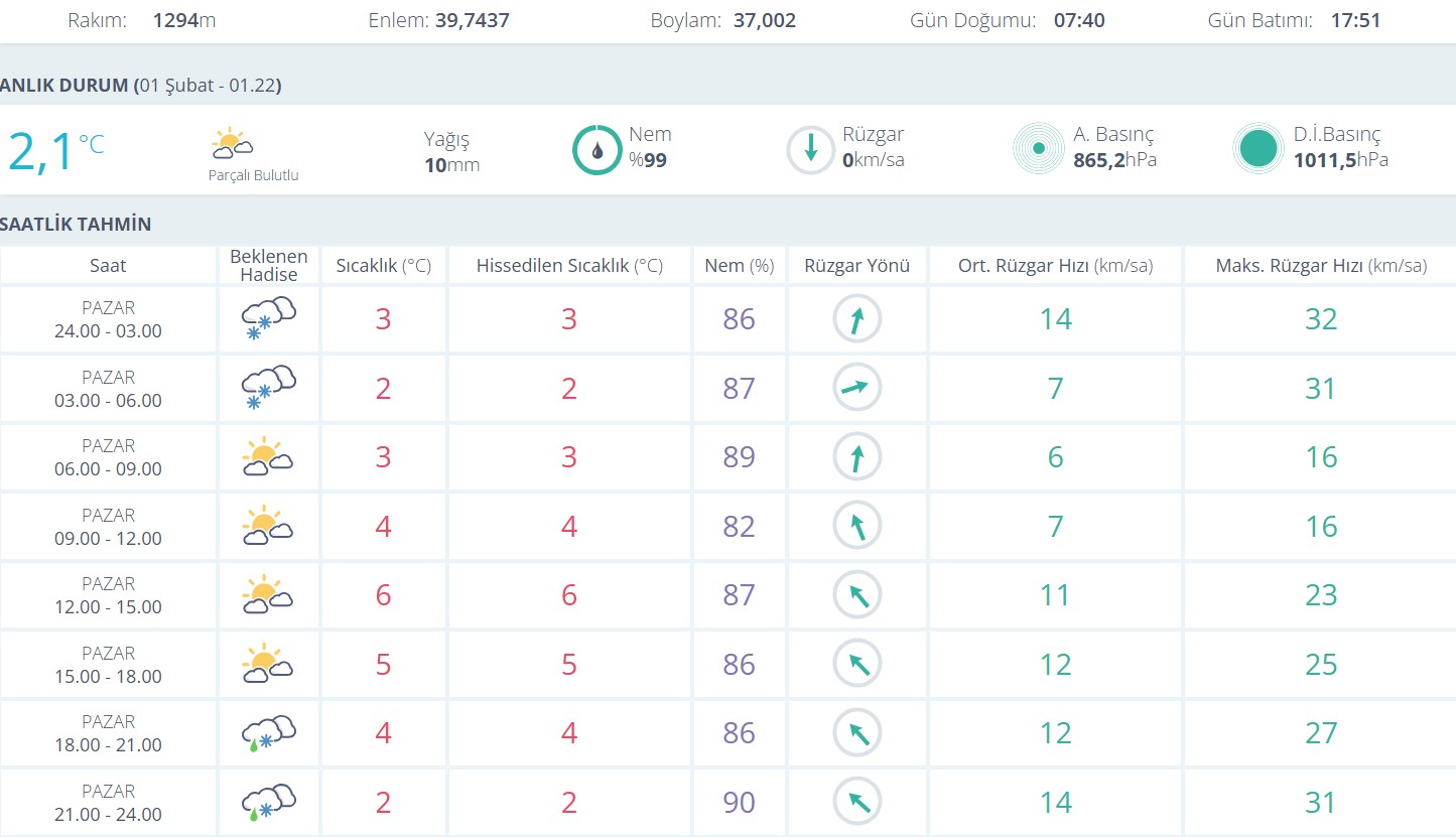 Yetkililer, özellikle sabah erken saatler ile gece geç saatlerde yola çıkacak vatandaşları uyararak, olası buzlanma ve kaygan zeminlere karşı tedbirli olunmasını istedi. Gün doğumu saat 07.40, gün batımı ise 17.51 olarak kaydedildi.