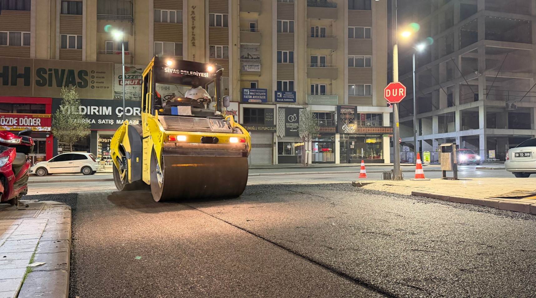 Sivas Belediyesi, asfalt çalışması, yol yenileme, gece çalışması, ulaşım