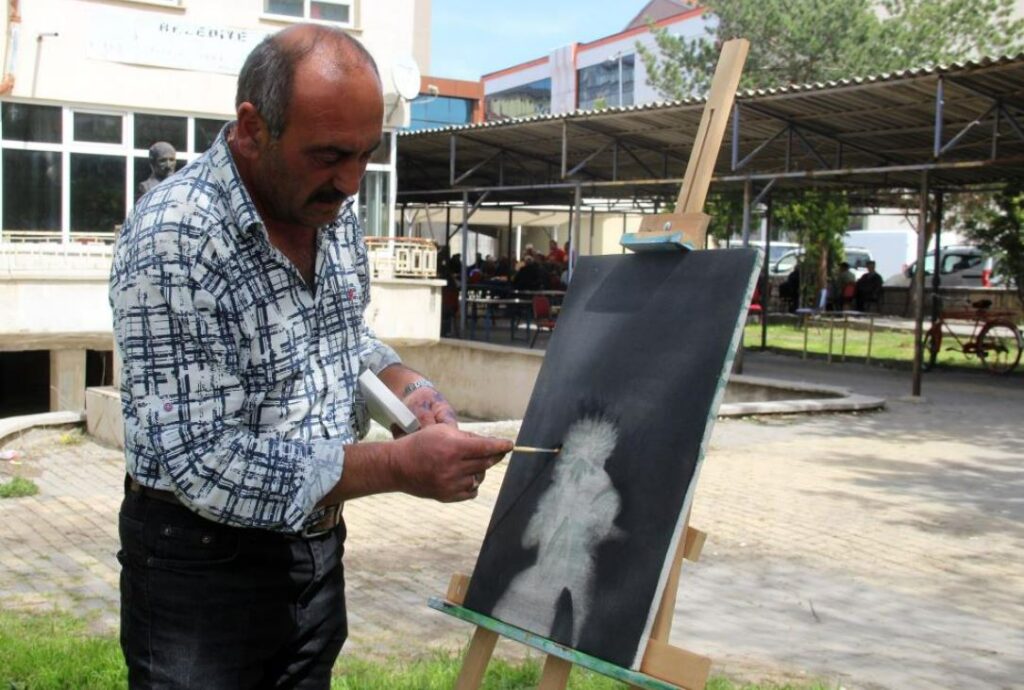 Sivas’ta ayakkabı boyacılığı yapan Murat Ünser ünlü ressamlara taş çıkartıyor!