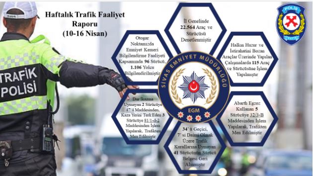 İl Emniyet Müdürlüğü tarafından paylaşılan verilere göre, 10-16 Nisan tarihleri arasında kent genelinde yoğun trafik denetimleri yapıldı.