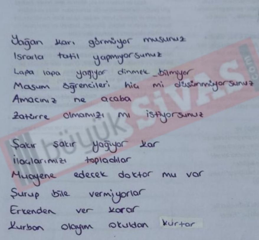 Kar tatili beklentisi sürerken, öğrencinin yazdığı bu yaratıcı şiir, sosyal medyada gülümseten paylaşımlar arasında yerini aldı.