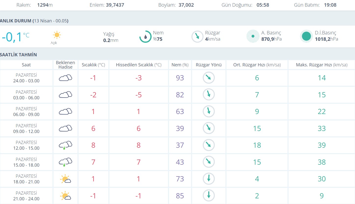 Meteorolojik verilere göre sabah saatlerinde sıcaklık -2 dereceye kadar düşerken, hissedilen sıcaklık ise yer yer -5 dereceyi buluyor. Gece ve sabah erken saatlerde yüksek nem oranı ve düşük sıcaklık nedeniyle buzlanma ve don olaylarına karşı dikkatli olunması gerekiyor.