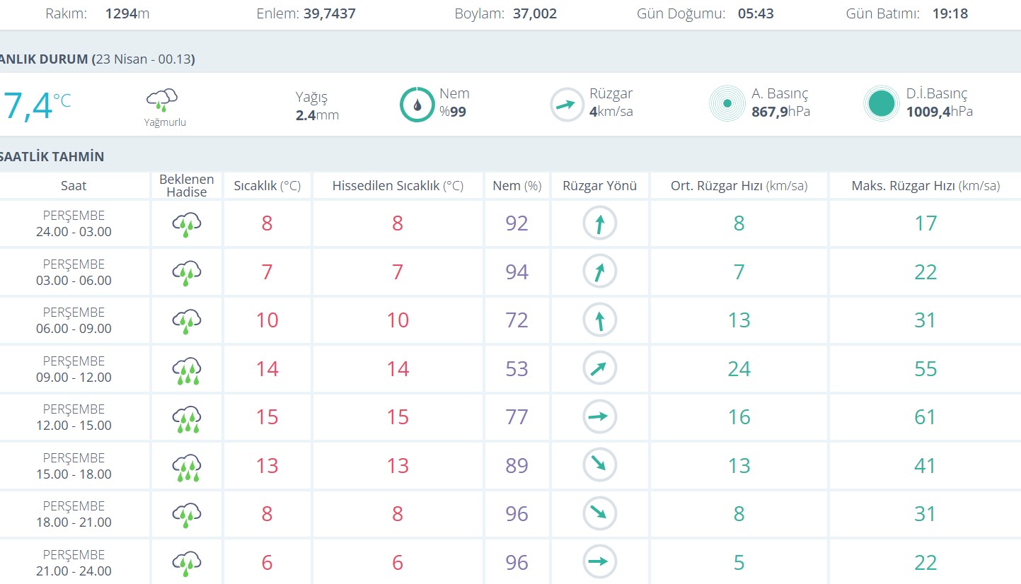 Sivas'ta Bugün Hava Nasıl Olacak...Sivas’ta 23 Nisan Perşembe günü boyunca sağanak yağışın etkili olması bekleniyor.
