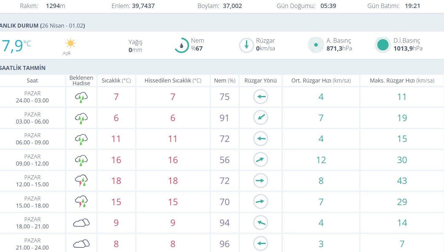 Sivas'ta Bugün Hava Nasıl Olacak...Sivas’ta 26 Nisan Pazar günü hava durumuna göre gün boyunca aralıklı yağış bekleniyor.