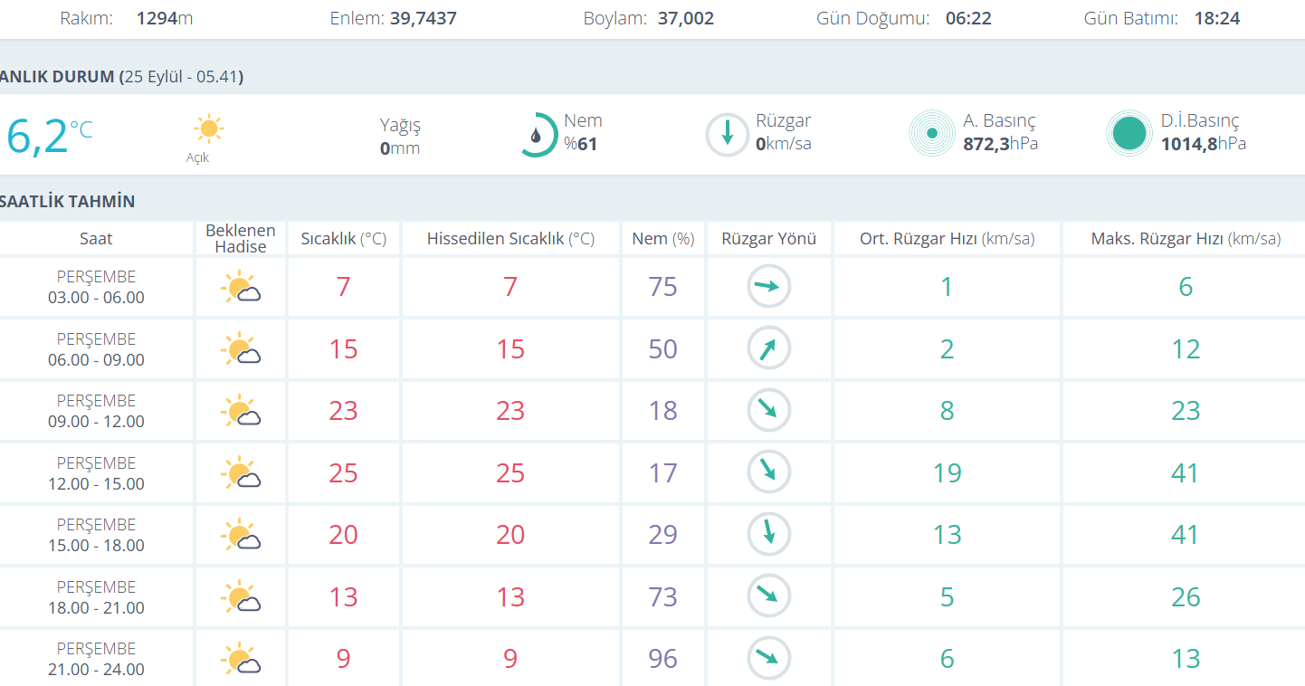 Sabah saatlerinde 7 derece olan sıcaklık, gün içerisinde yükselerek öğle saatlerinde 25 dereceye kadar çıkacak. Öğleden sonra sıcaklıkların yeniden düşmesiyle akşam saatlerinde 13 derece, gece saatlerinde ise 9 dereceye kadar gerilemesi bekleniyor.