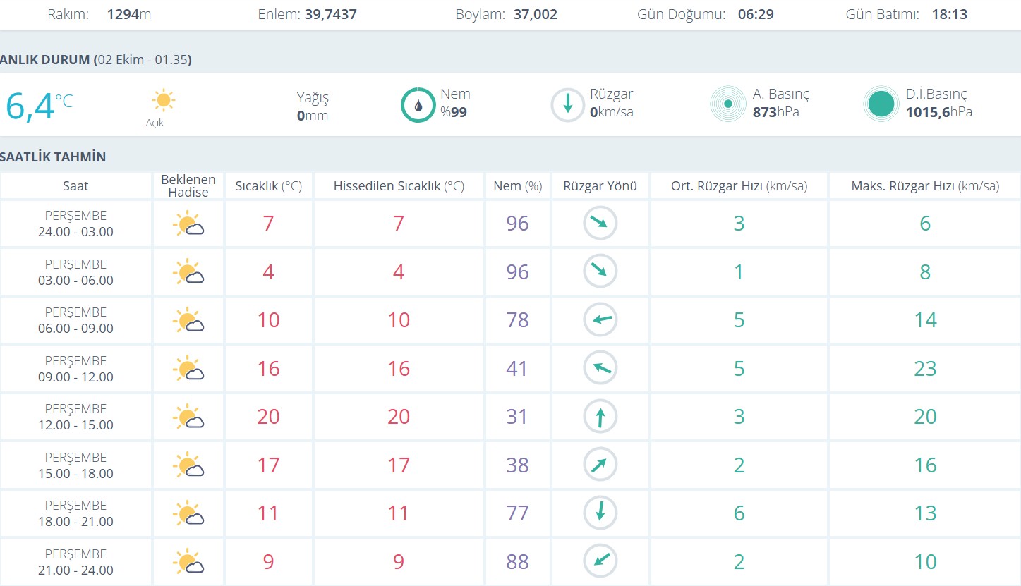 2 Ekim Perşembe günü için açıklanan tahminlerde, sabaha karşı sıcaklık 4 dereceye kadar gerileyecek.