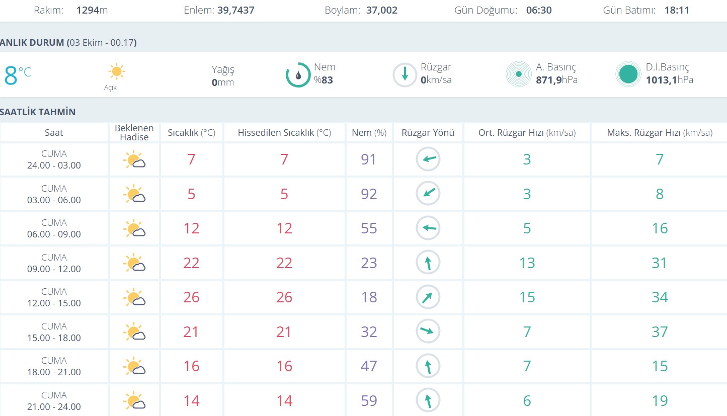 Günün detaylı tahmini: