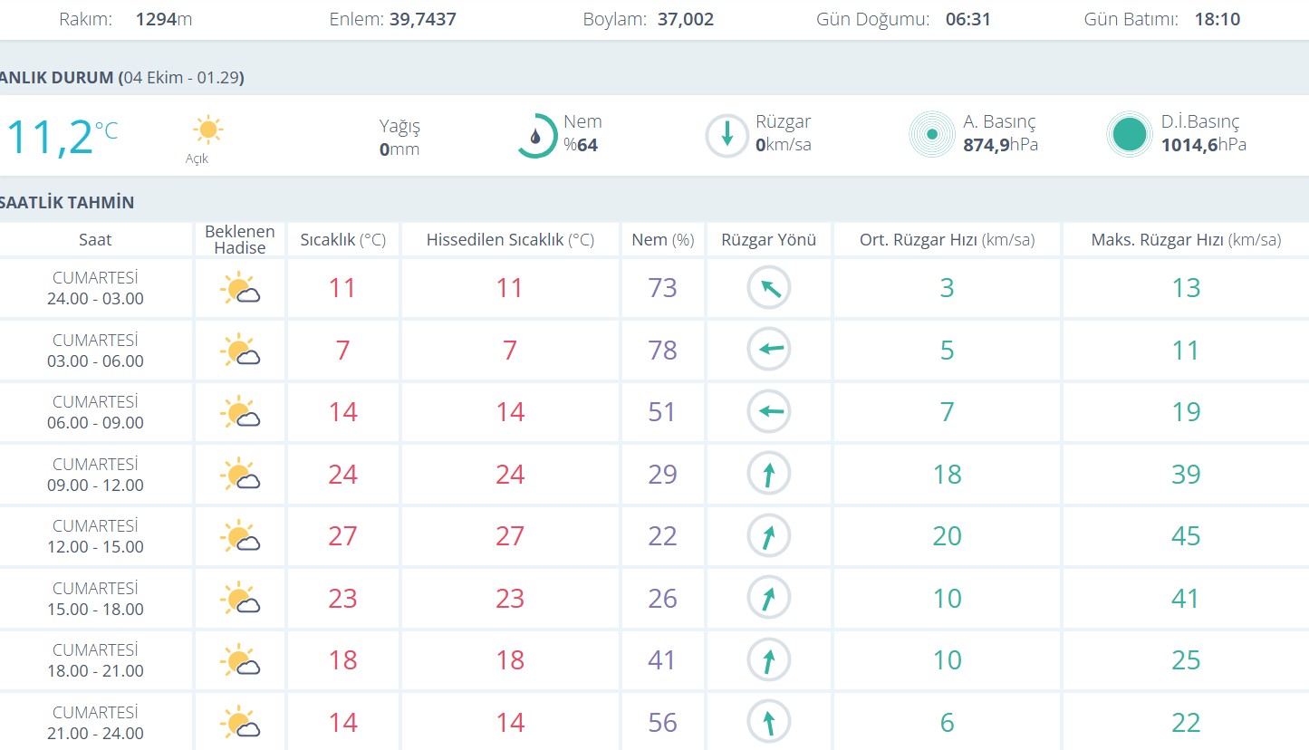 Meteoroloji Genel Müdürlüğü verilerine göre, 4 Ekim Cumartesi günü hava açık ve güneşli geçecek.