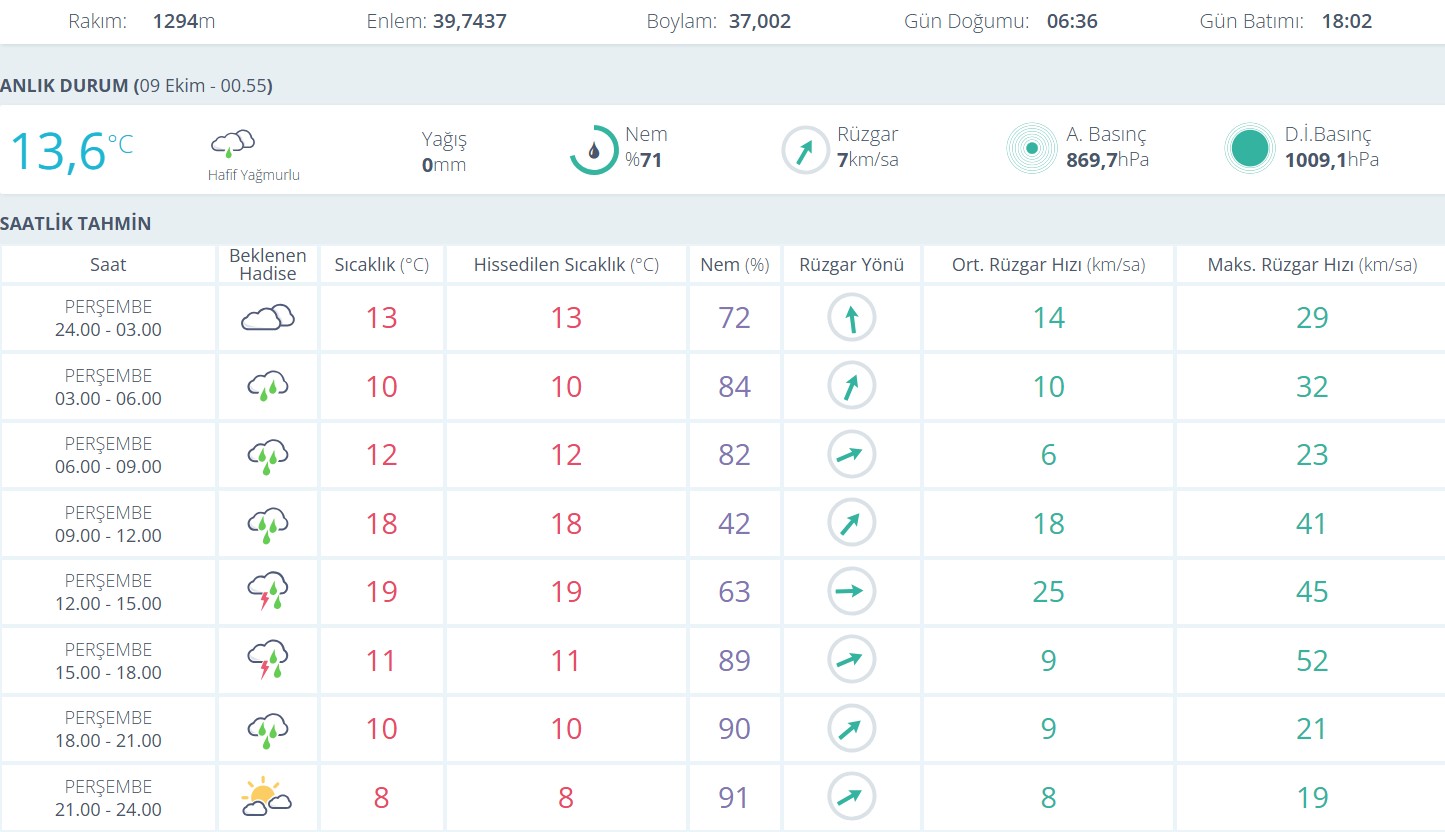 Meteoroloji verilerine göre Sivas’ta bugün gün boyu yağış bekleniyor.
