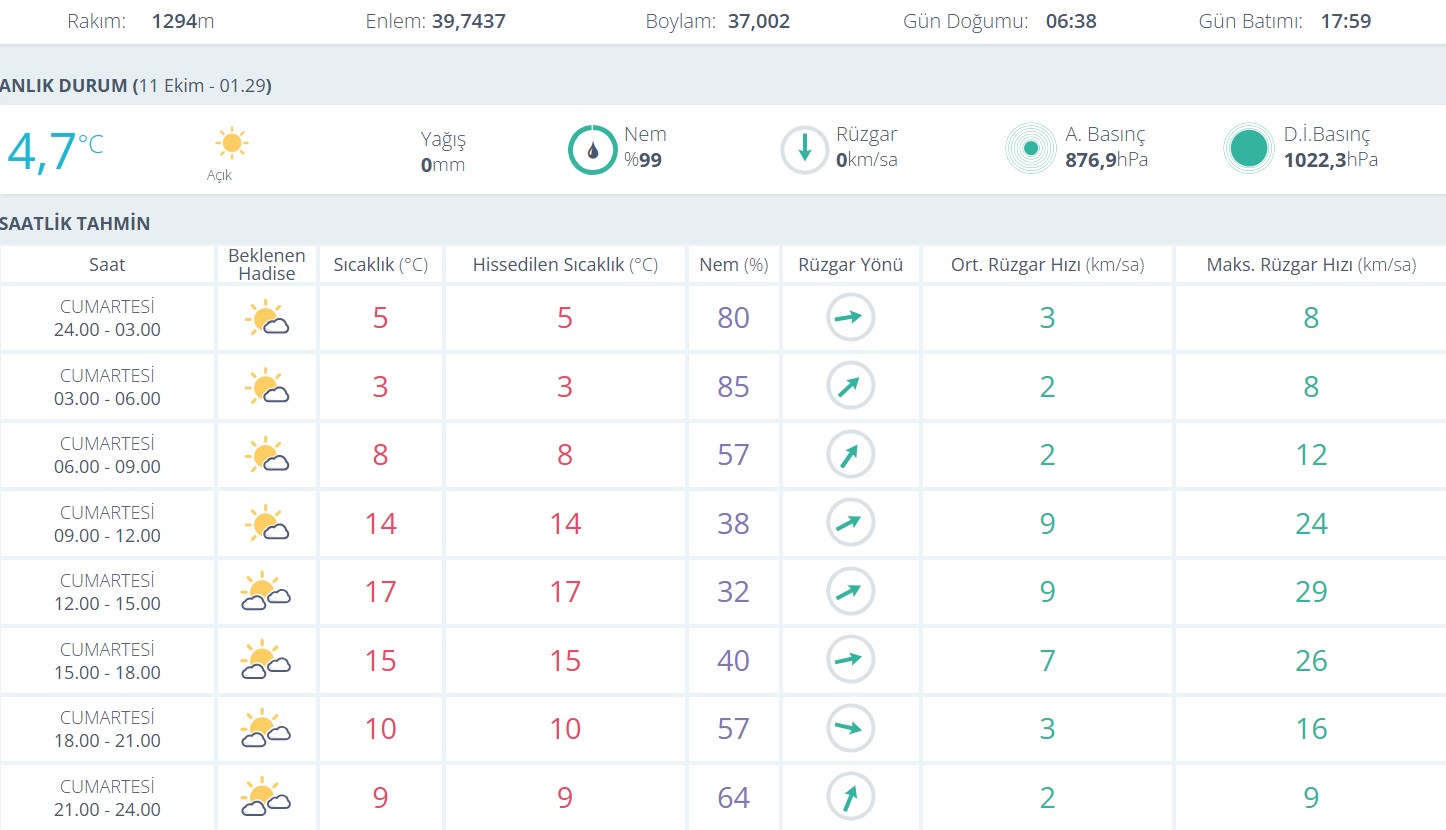 Meteoroloji verilerine göre 11 Ekim Cumartesi günü kentte hava açık ve parçalı bulutlu geçecek.