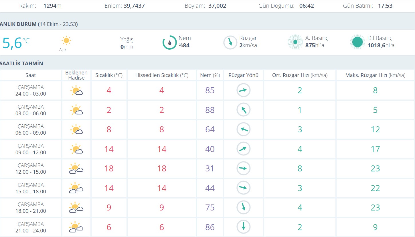 Meteoroloji yetkilileri, 15 Ekim Çarşamba günü sabah saatlerinde yer yer ayaz ve hafif don olaylarının görülebileceğini belirtti. Gün içerisinde hava sıcaklığının yükselmesiyle birlikte öğle saatlerinde termometrelerin 18 dereceye kadar çıkması bekleniyor.