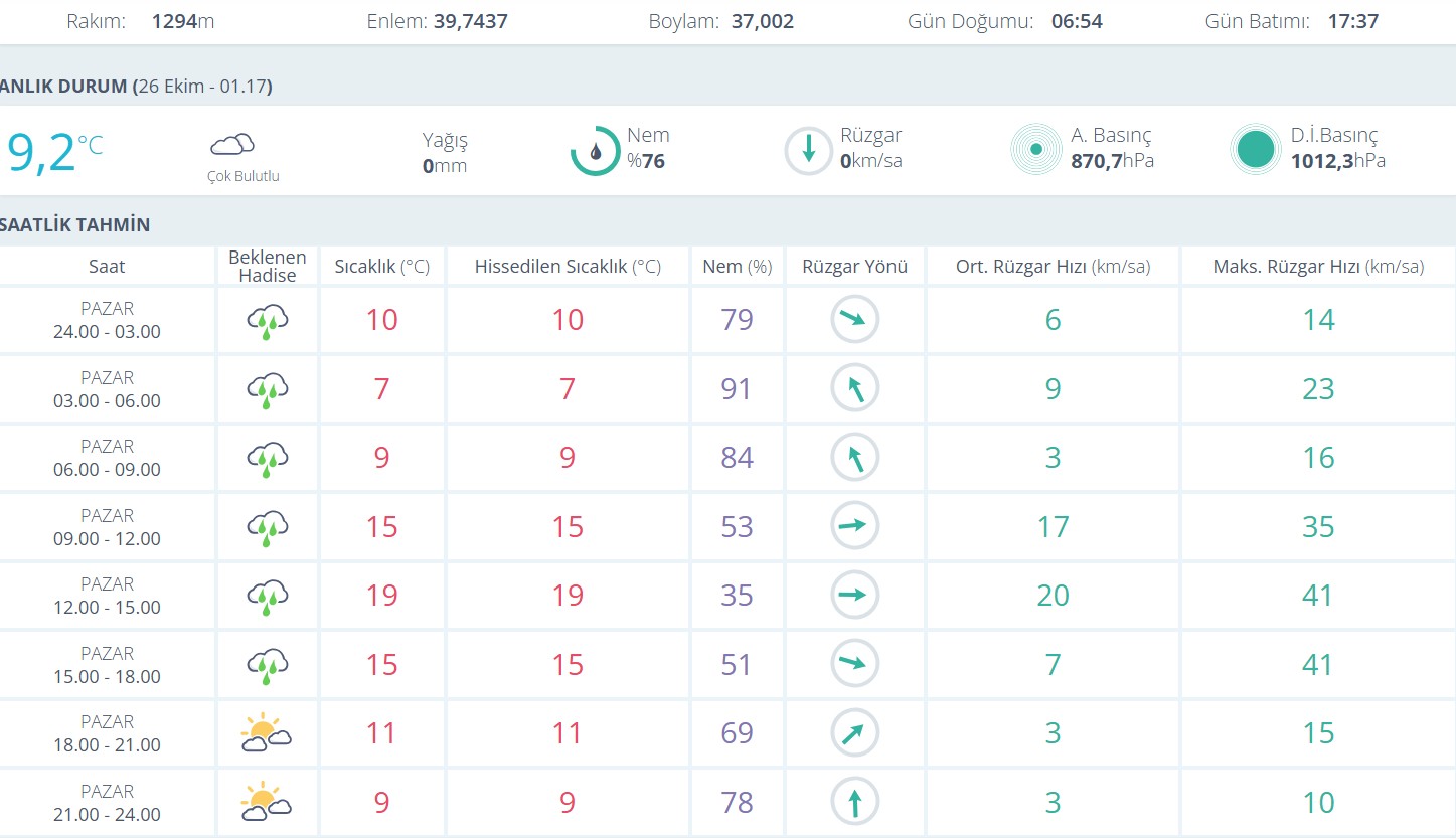 Meteoroloji verilerine göre Sivas’ta hava sıcaklığı 9,2°C ölçülürken gün boyunca çok bulutlu bir hava hakim olacak.