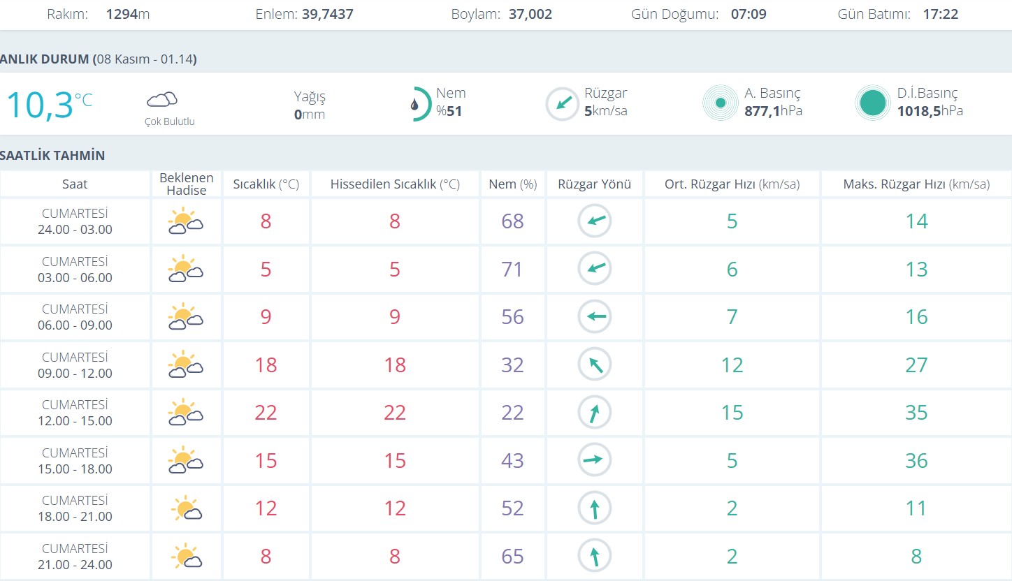Nem oranı gün içinde yüzde 22 ile 71 arasında değişecek. Rüzgar genellikle doğu ve güneydoğu yönlerinden esecek. Ortalama rüzgar hızı 5 ila 15 kilometre arasında olurken, günün en yüksek rüzgar hızının 35 kilometreye kadar çıkması öngörülüyor.