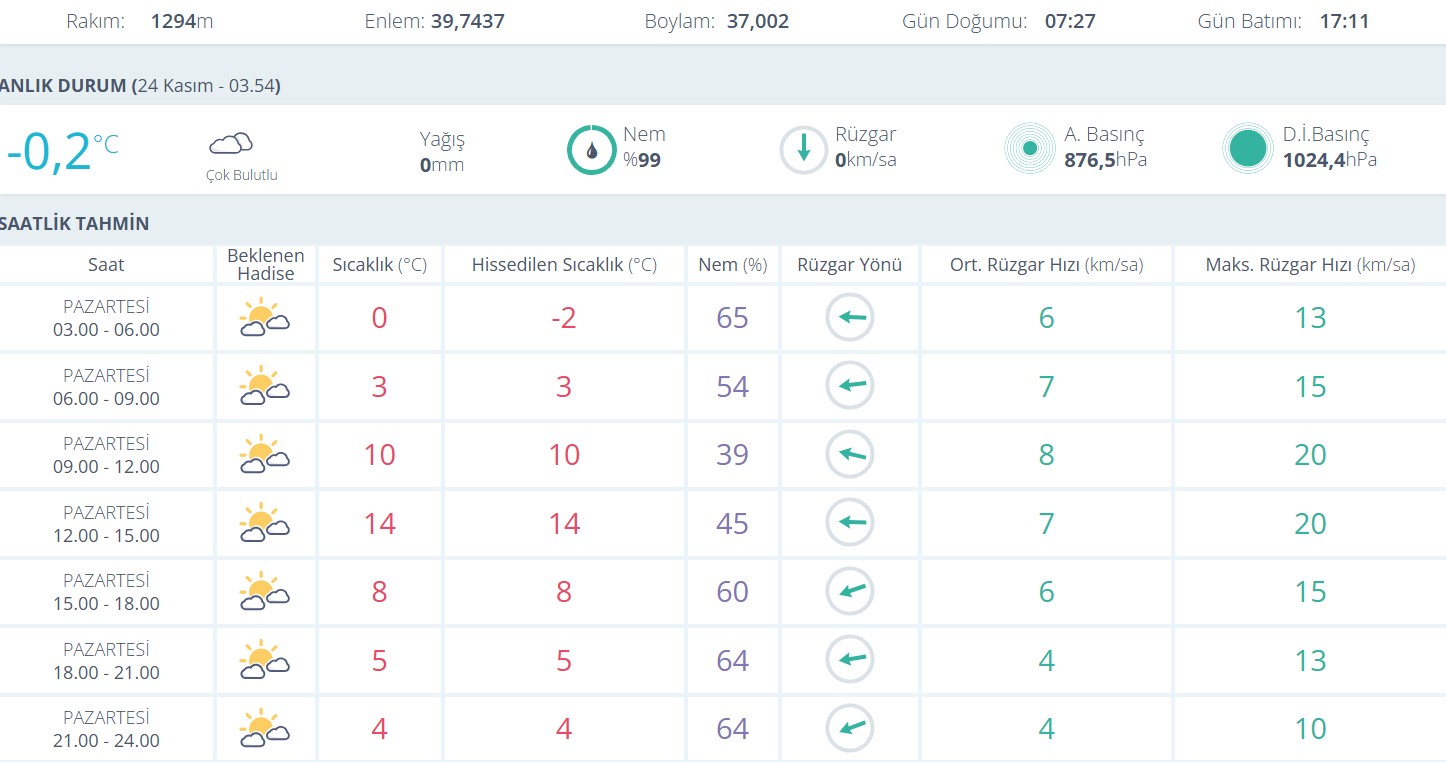 Saatlik tahminlere göre: