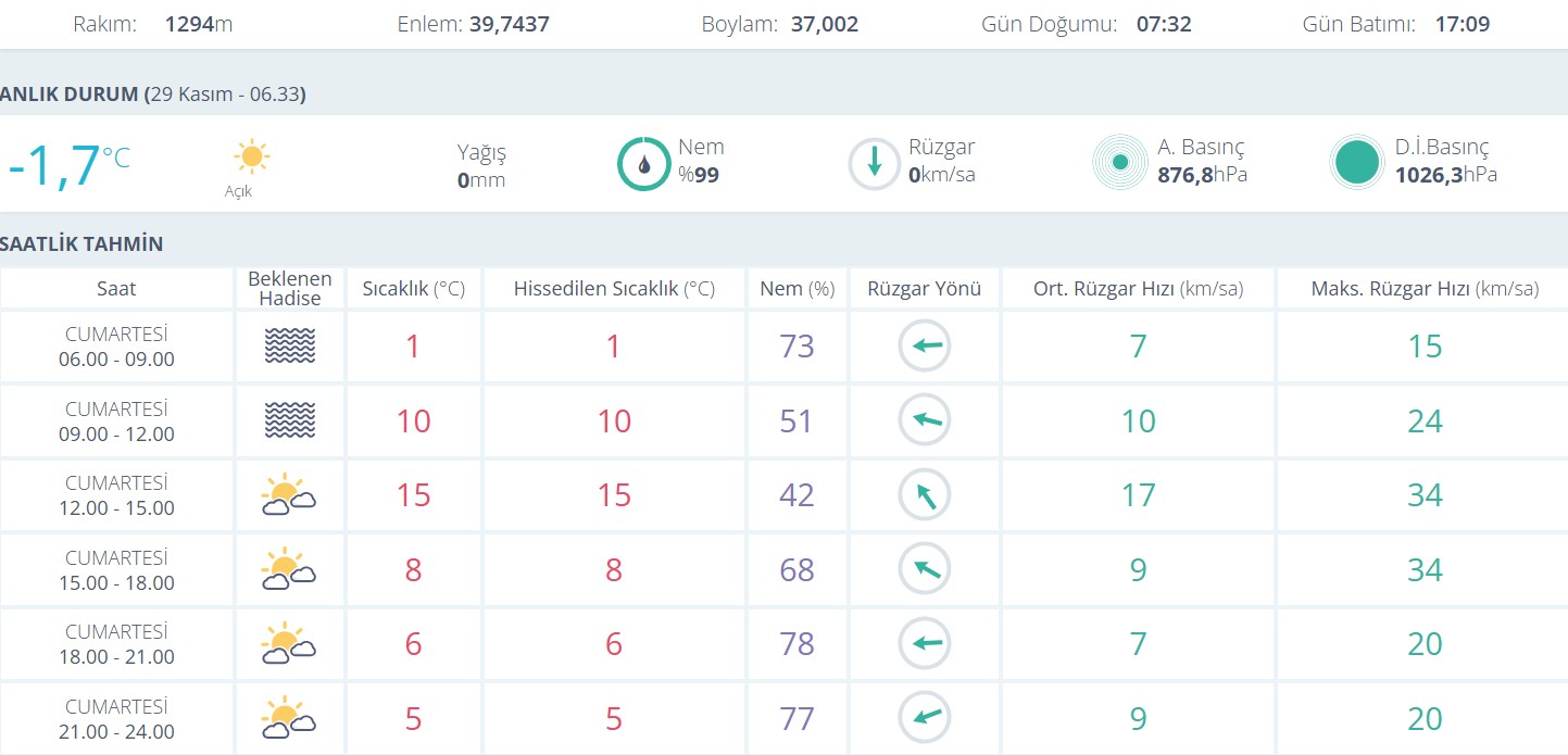 Sivas’ta 29 Kasım Cumartesi gününe ait saatlik hava durumu tahminleri açıklandı.