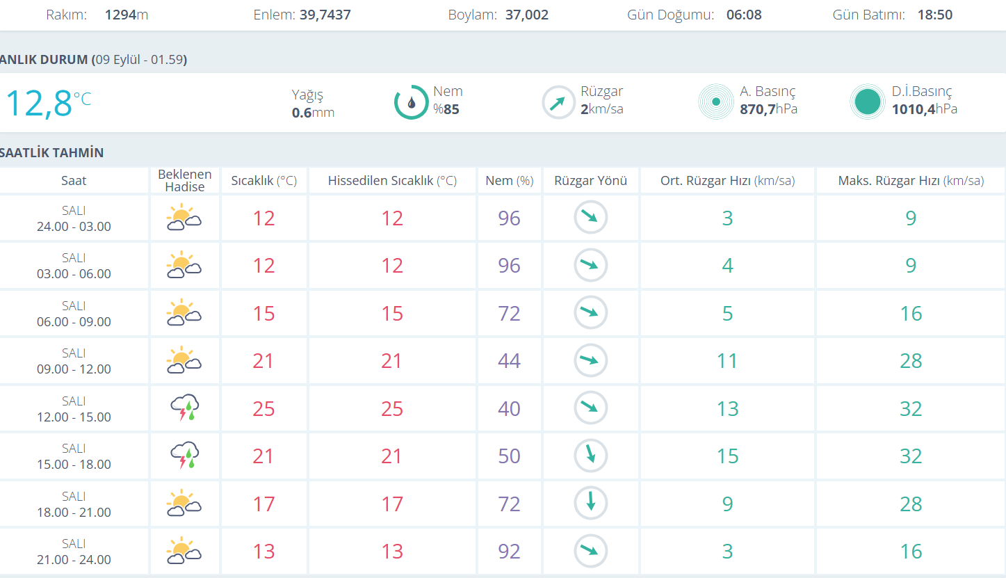 Meteoroloji verilerine göre Sivas’ta hava sıcaklığı 12,8 derece olarak ölçülürken, gün içerisinde gök gürültülü sağanak yağış bekleniyor.