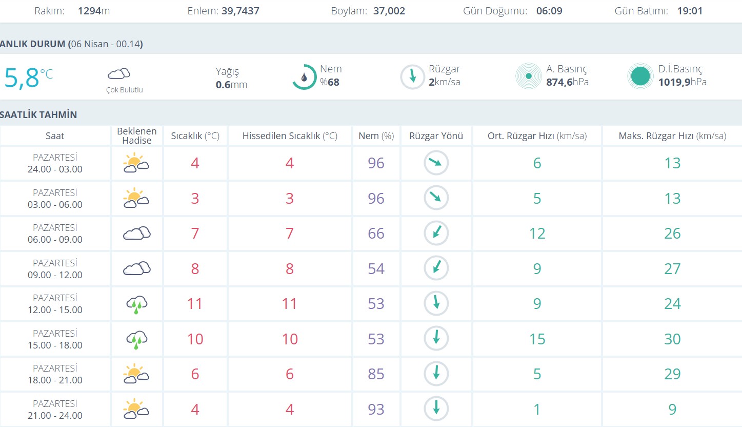 Meteorolojik verilere göre gece saatlerinde sıcaklık 3-4 derece seviyelerinde seyrederken, sabah saatlerinden itibaren hava sıcaklığının yükselmesi bekleniyor. Öğle saatlerinde sıcaklığın 11 dereceye kadar çıkacağı tahmin ediliyor.