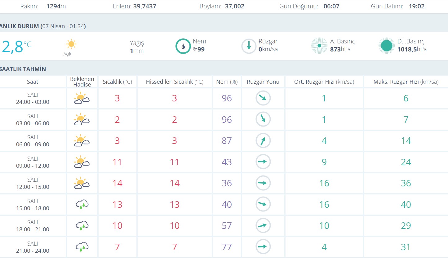 Meteorolojik verilere göre sabah saatlerinde hava parçalı bulutlu olacak. Sabah erken saatlerde sıcaklık 2-3 derece civarında seyrederken, hissedilen sıcaklık da aynı seviyelerde olacak. Nem oranının ise oldukça yüksek olduğu, yüzde 90’ların üzerinde seyrettiği görüldü.