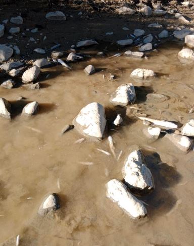 Divriği ilçesi Güneş köyü girişinde kuruyan çayda yüzlerce balık telef oldu. Bölge halkı ise bu duruma isyan etti. Köylüler yetkililere seslenerek önlem alınmasını istedi.