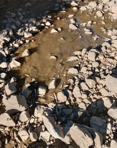 Sivas’ın Divriği ilçesinde kuraklık ve bilinçsiz sulama nedeniyle çay kurudu, kuruyan çayda yüzlerce balık telef oldu.