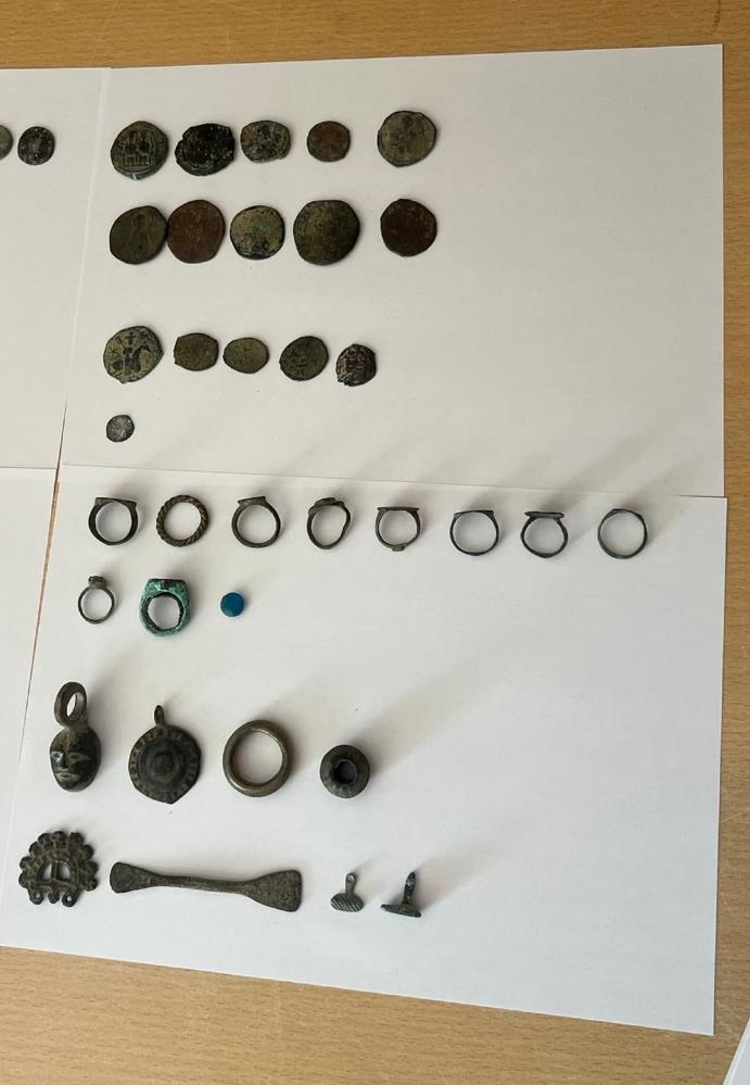 Yetkililer tarafından yapılan incelemelerde bulunan materyallerin önemli tarihi değere sahip olduğu belirlendi. Eserler arasında 102 sikke, 11 yüzük, 7 çeşitli obje, 3 heykel, 2 mühür, 1 ok ucu, 1 yüzük parçası ve 1 madeni para yer aldı.
