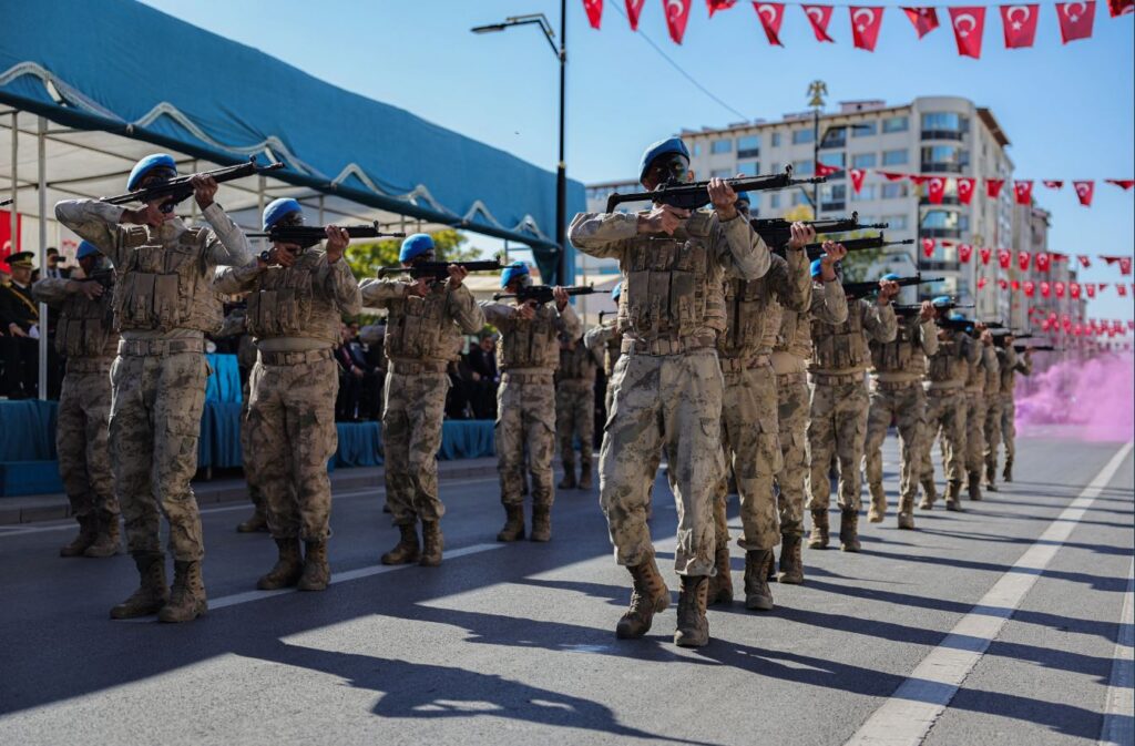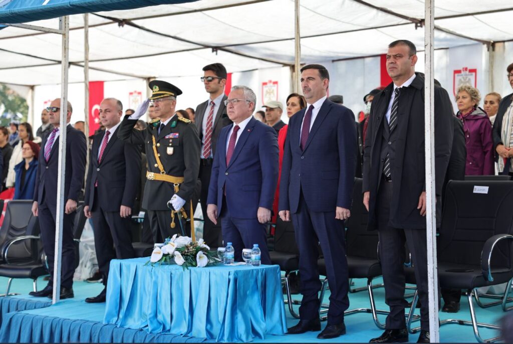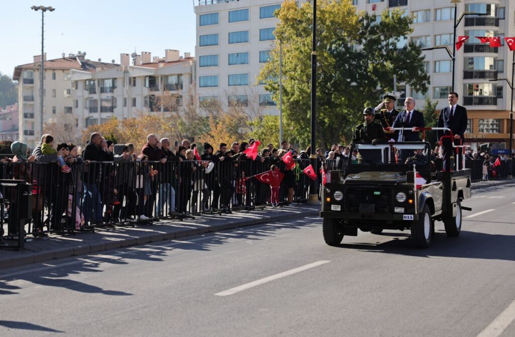 Askeri tören birlikleri, askeri araçlar, Jandarma, Emniyet Müdürlüğü ve öğrencilerin geçişi ile resmi geçit töreni sona erdi.