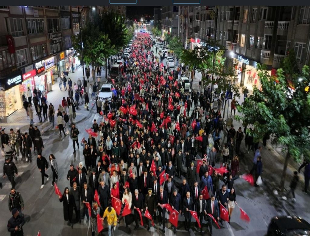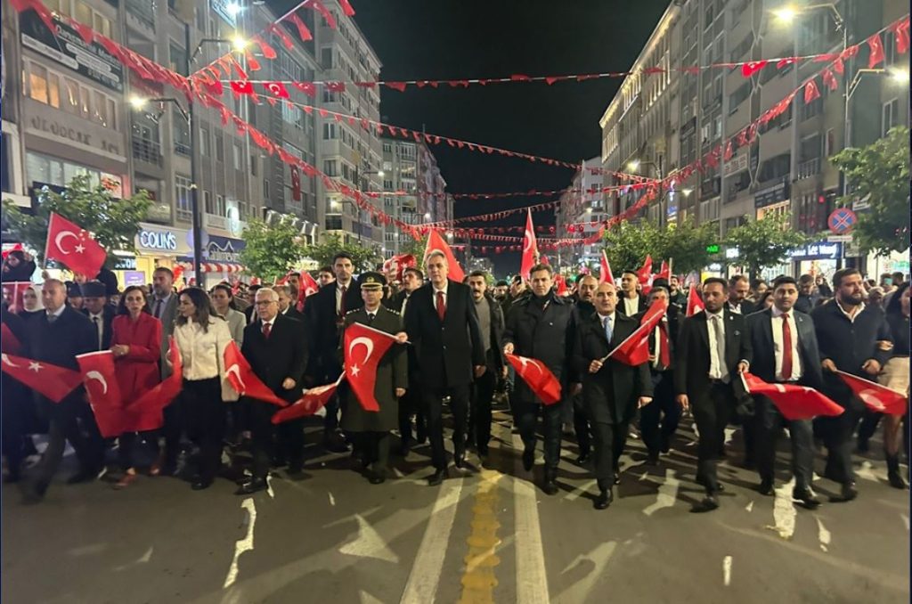 Sivas’ta Cumhuriyet’in ilan edilişinin 101’inci yılı kutlamaları kapsamında Türk bayraklarıyla yürüyüş düzenlendi.
