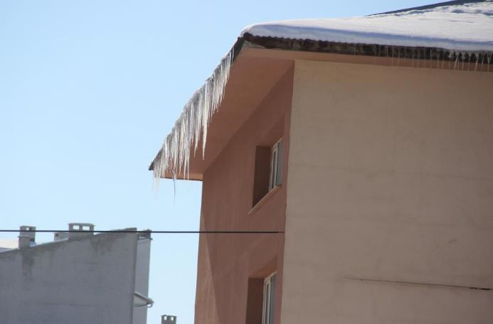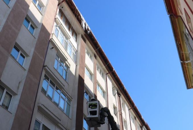 Çatılarda oluşan buz sarkıtları tek tek temizleniyor