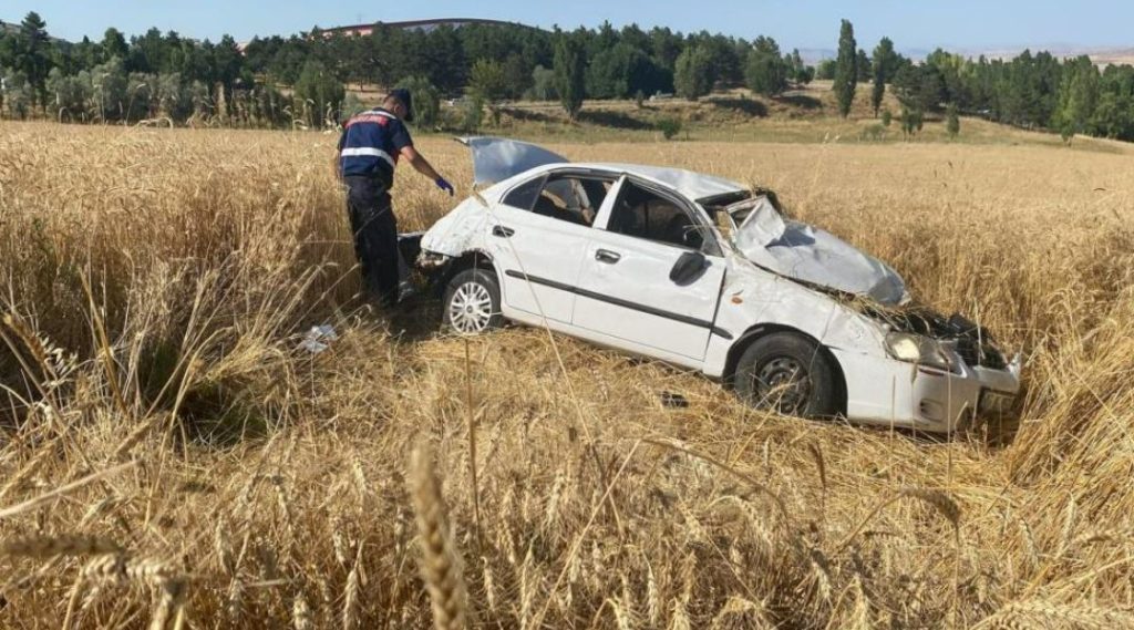 Sivas’ta direksiyon hakimiyetini kaybedip araçla birlikte tarlaya uçan iki kişi ağır yaralandı.