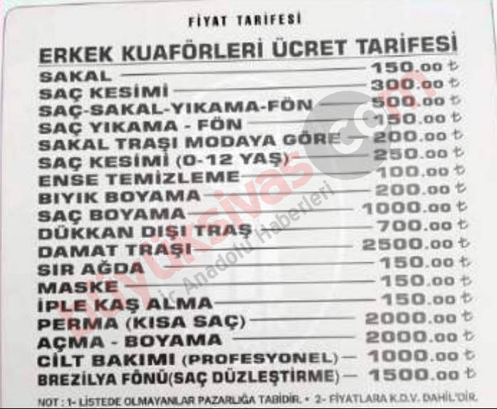 İşte Sivas’ta geçerli olan yeni berber ücretleri: