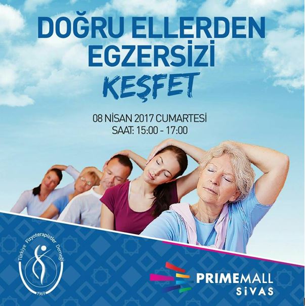 Sivas’ta 8 Nisan Cumartesi günü saat 15:00 ile 18:00 saatleri arasında Sivas Primemall Alışveriş Merkezinde fizyoterapist eşliğinde egzersiz yapılacaktır.