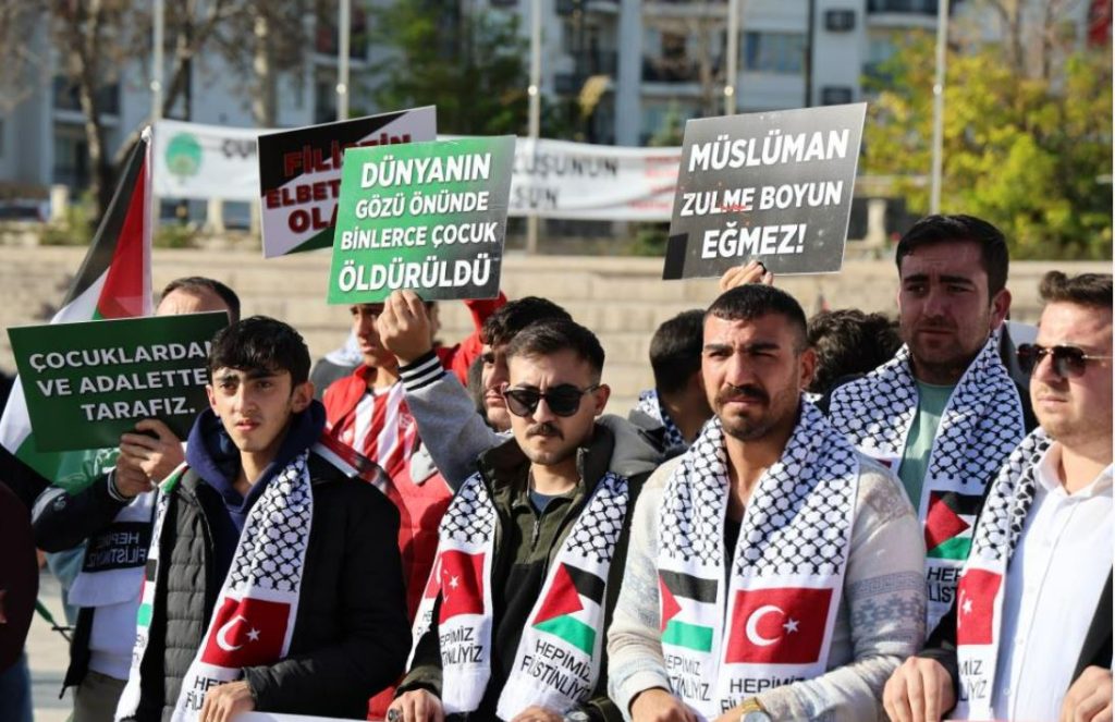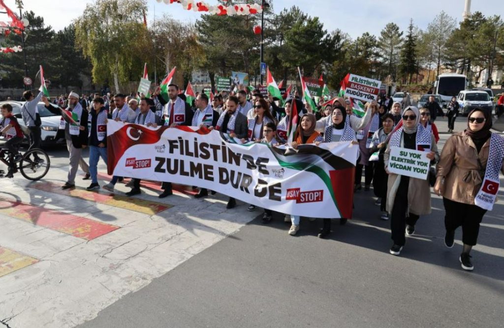 Filistin’e destek yürüyüşüne Ak Parti Sivas Milletvekili Hakan Aksu, Sivas Belediye Başkanı Hilmi Bilgin, Ak Parti İl Başkanı Yusuf Tanrıverdi, İl Genel Meclis Başkanı Hakan Akkaş ve çok sayıda partili katıldı.