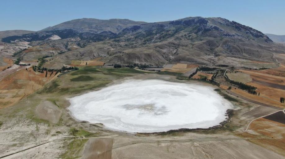 Sivas’ın Ulaş ilçesine uzaklığı yaklaşık 5 kilometre olan Kellah Gölü, geçtiğimiz yıllar olduğu gibi bu yılda kuraklığın etkisiyle tamamen kurudu. Suların çekildiği gölden geriye beyaz bir tabaka kaldı.
