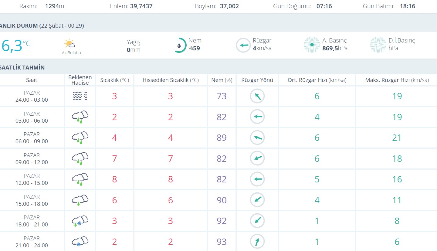 Günün ilerleyen saatlerinde yağışın aralıklarla devam edeceği tahmin edilirken, 09.00–12.00 arasında sıcaklığın 7 dereceye, öğle saatlerinde ise 8 dereceye kadar çıkması bekleniyor. Bu saatlerde yağmurun yer yer etkisini artırabileceği ve nem oranının yüksek seyredeceği bildirildi.