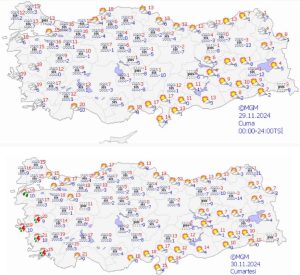 Meteoroloji Genel Müdürlüğü'nden alınan son tahminlere göre, hafta sonu yurt genelinde hava durumu şu şekilde olacak:
