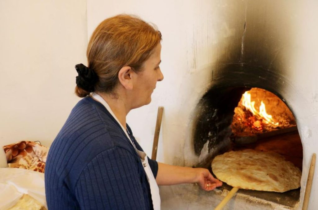 Sivas’ın Divriği ilçesinde bulunan tarihi Hüma Hatun Sokağı’nda taş fırın ekmeği üreten Saime Demir, evine destek oluyor.