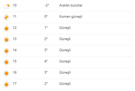 Gün içerisinde herhangi bir yağış beklenmezken, hava sıcaklığının en yüksek 4°C, en düşük ise -5°C olması tahmin ediliyor.