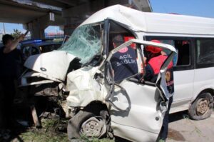 Çarpışmanın etkisiyle karşı şeride geçen Ford Transit marka araç yaklaşık 100 metre ileride bulunan köprü ayağına çarparak durabildi. Transit' de sıkışan 2 kişiyi itfaiye ekipleri çıkardı.
