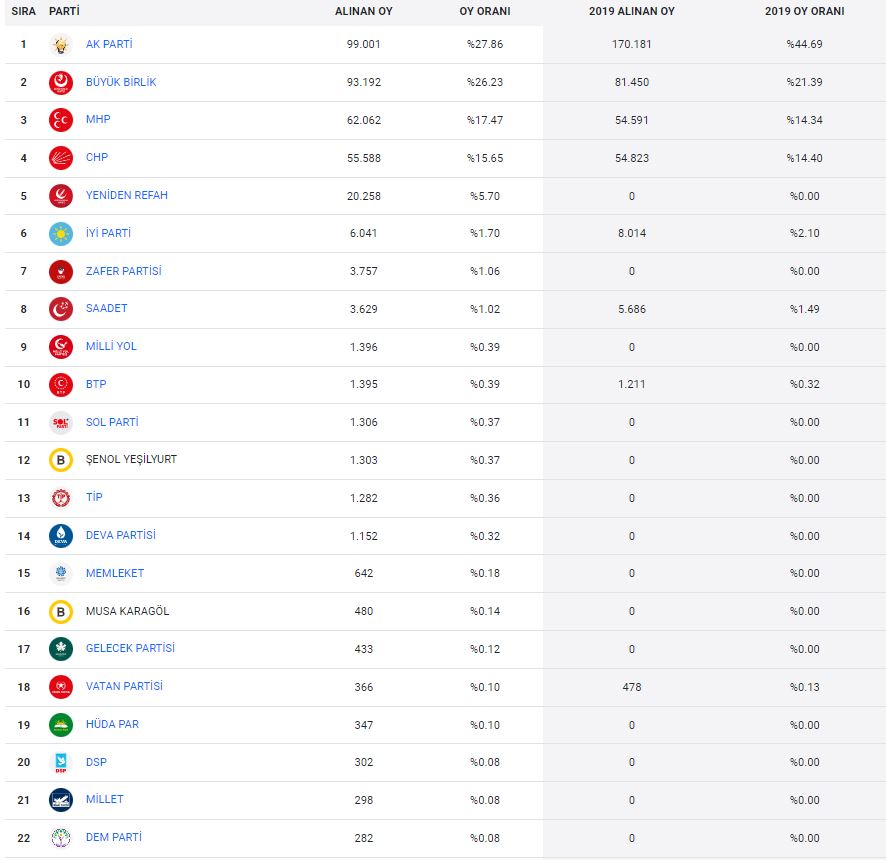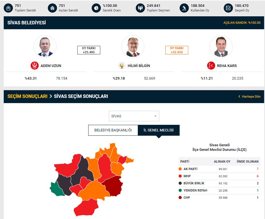 İşte 31 Mart 2024 Yerel Seçimlerinde Sivas'ta İL GENEL MECLİSİ sonuçları..