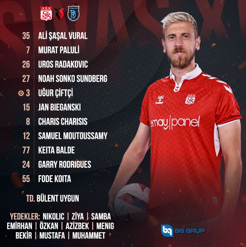 Net Global Sivasspor: Ali Şaşal, Murat, Sonko, Radakovic, Uğur, Samuel, Jan Bieganski, Charisis, Keita Balde, Garry Rodrigues, Koita.