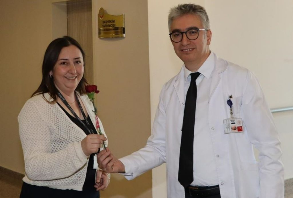 Sivas Numune Hastanesi Başhekimi Uzm. Dr. Mehmet Fidan, 8 Mart Dünya Kadınlar Günü’nde kadın sağlık çalışanlarını unutmadı. Hastane yöneticileri ile birlikte çalışanları birimlerinde ziyaret eden Başhekim Fidan, hediye kutusu ve karanfil takdim etti. Fidan, sağlık çalışanlarının özverili çalışmalarından dolayı kutlayarak, “Bütün kadın sağlık çalışanlarımızın 8 Mart Dünya Kadınlar Günü’nü kutluyor, çalışma hayatlarında başarılar diliyorum” ifadelerine yer verdi. (İHA)