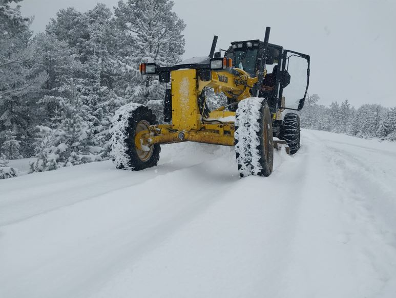 İlçeye bağlı Kale köyünde yağışın ardından İlçe Özel İdaresi ekipleri karla mücadele çalışması yürüttü.-AA
